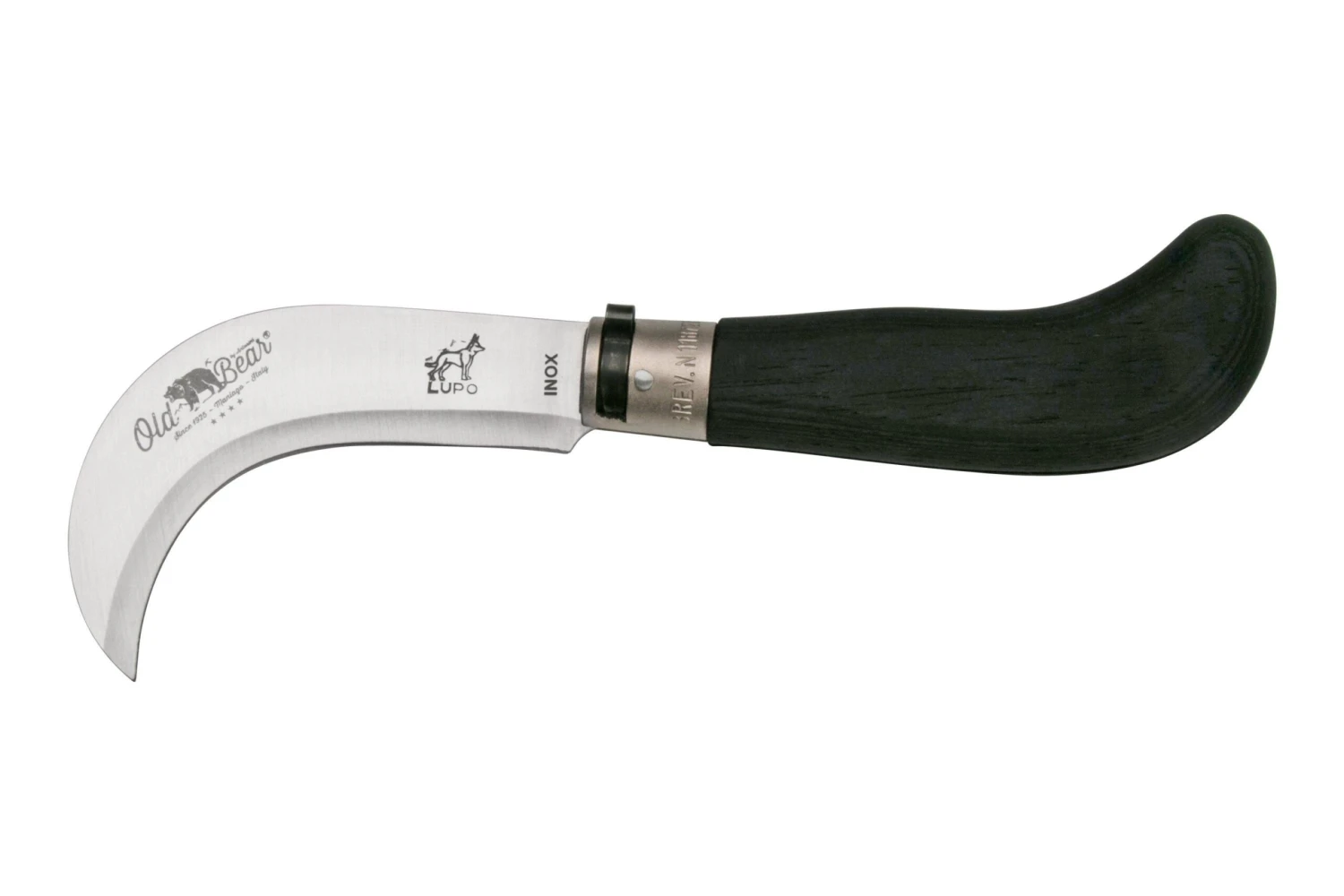 La Old Bear Pruning Black Laminated L es una navaja clásica de Italia. El cuchillo se puede abrir fácilmente gracias a su hoja alta. Lo haces con las dos manos. Por ello, el cuchillo puede llevarse legalmente en casi toda Europa. El cuchillo se bloquea tanto cuando está abierto como cuando está cerrado. Es el resultado de un mecanismo Lupo-lock, un bloqueo de anillo que hemos visto en marcas de cuchillos similares pero que puede ser controlado con una sola mano.